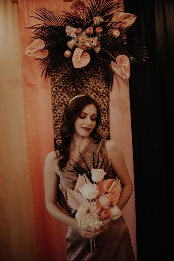 Be inspired by warm Moroccan evenings with our beautiful Josephina wedding stationery. Sunset tones of pinks and peaches dazzle on shimmering smokey grey card. The prints feature rusty palm spear illustrations, with blush peonies, dried palm leaves and anthurium plants. Your boho wedding would not be complete without these invitations.