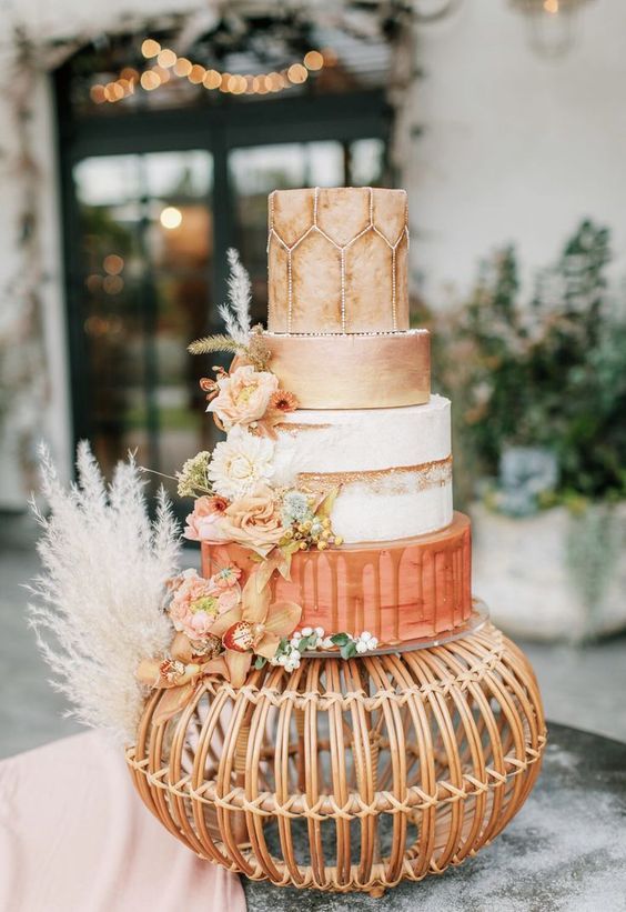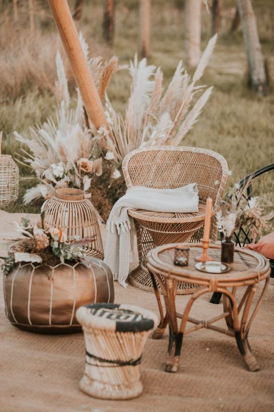 Inspiration - Boho vibes are the ultimate inspiration for our Josephina wedding stationery. Imagine gorgeous giant cane lanterns in between pampas grass, with a mixture of vintage rugs. Dark wood with raffia placemats, rust coloured plates and amber glass, set amongst golden fields.